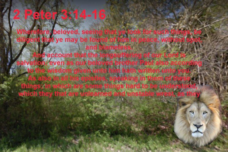 2Pe 3:14 Wherefore, beloved, seeing that ye look for such things, be diligent that ye may be found of him in peace, without spot, and blameless.